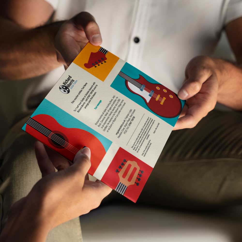 Richard teaches guitar and ukulele from home in Felpham Village, West Sussex, in a dedicated room and also via Zoom or Skype if you prefer not to travel. He is DBS certified and teaches regularly in schools in the area. Richard can teach in any style and is accustomed to teaching beginners, improvers, young and older students, and tailors his lessons to his pupils' musical preferences to ensure the student enjoys their lessons, maximizing their progression. To order your voucher, simply choose the number of lessons you want to buy, choose the delivery method, and fill in the information about whom the voucher is for and add your own message.